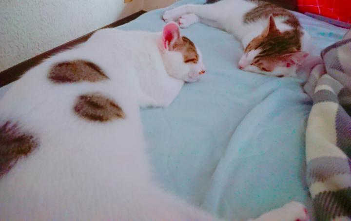 明け方まで二匹で走り回って、たまに噛まれて「やめてー!」と思ったけど寝顔をこんな近くで拝めました◎