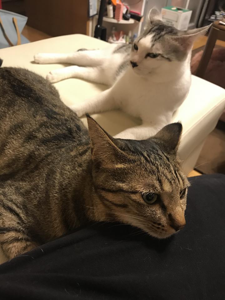 夜寝る時も足の間で寝てくれるので身動き取れません!こんなふうに懐いてくれるようになって嬉しいなぁ〜〜