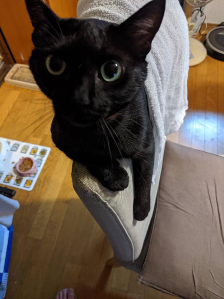 さいきんのあたしは、いすの「せもたれ」にすわるのがおきにいりです。