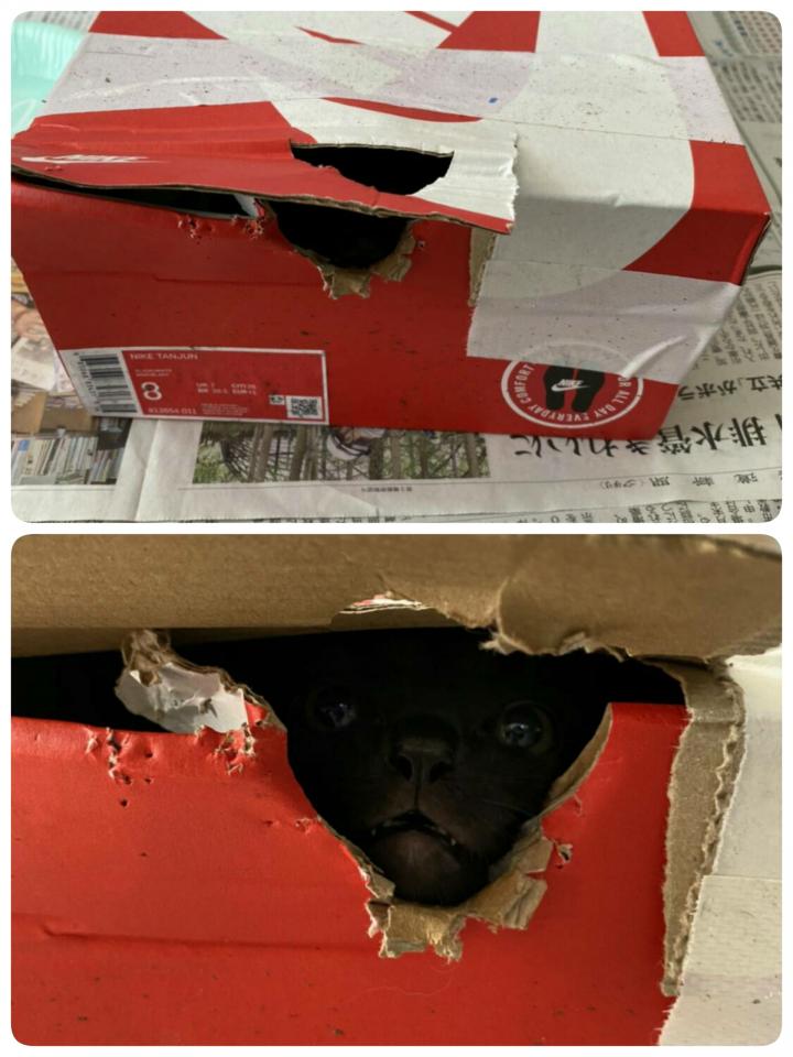 こんな過酷な日に、スニーカーの空き箱に子猫をいれて、テープぐるぐるで棄てた犯罪者がいます。