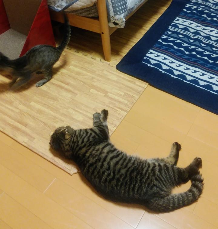 尻尾ポンポンにして空ちゃんにちょっかい出してます。