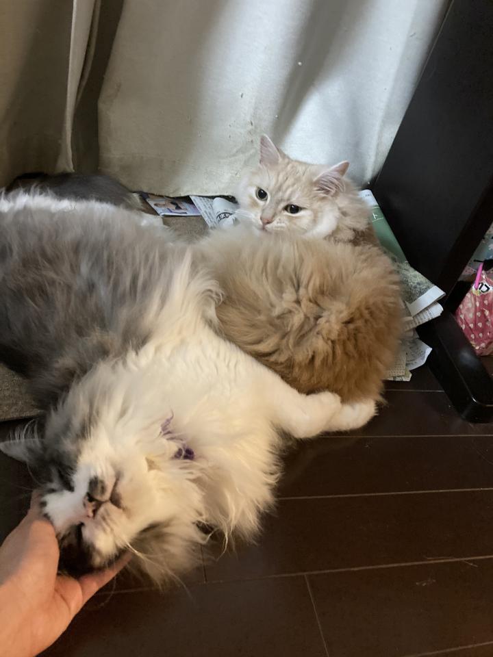 ちゃーは、なんだか、しーにも、猫パンチするし、私が横になるとゴロゴロ言いながら、私の頭に蹴り蹴りっ😱
