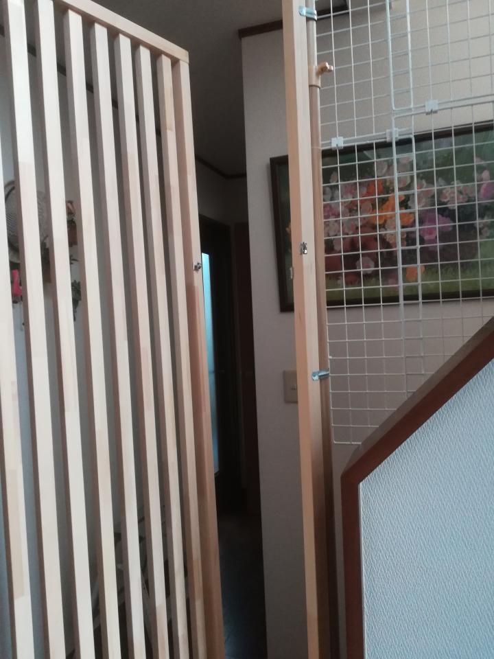 柵だけじゃなく、階段から玄関に脱走しかねないのでこれまたダイソーで材料調達。