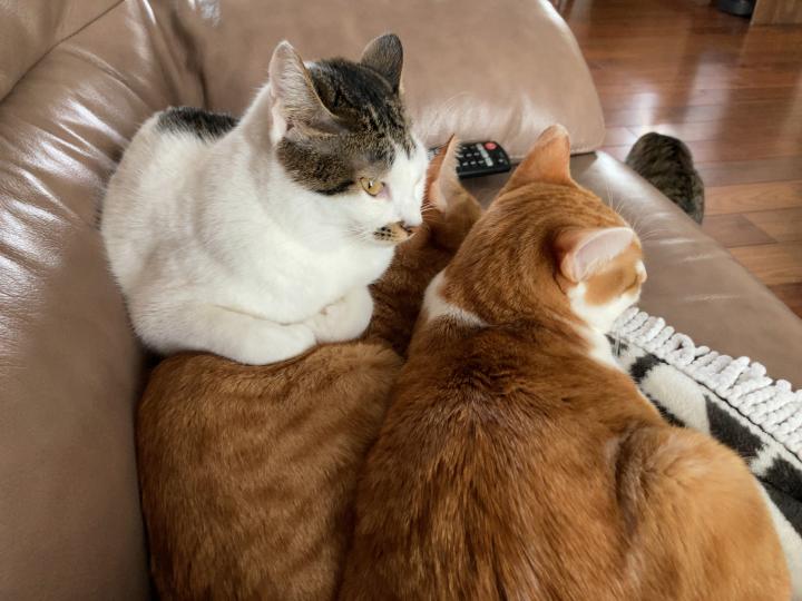 ネコ飼い初心者です。夫婦共働きです。 2019年秋頃からほぼ毎日家に来ていた野良猫の茶トラ(もんちゃん)、兄弟ネコの茶トラ白(福助くん)を、2020年1月から飼い始めました。 さらに、2匹を飼い始...