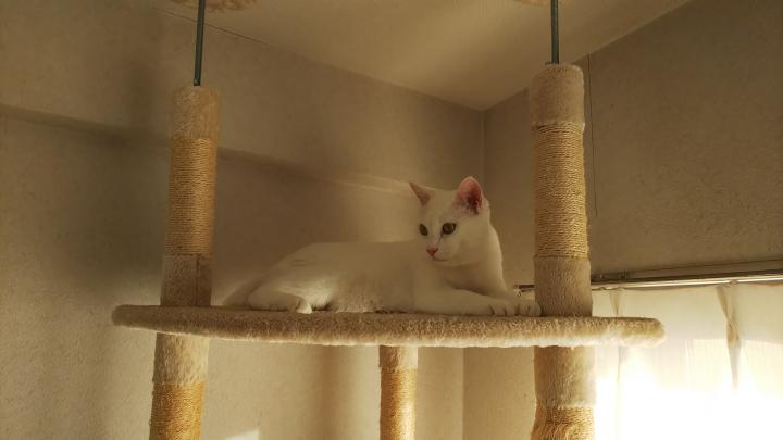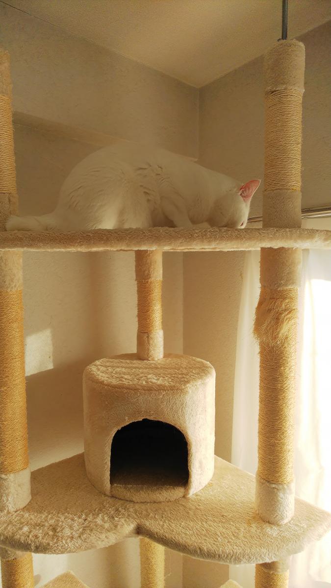 このタワーは、ちーちゃんがうちに来て1年経った頃に買いました。当時はちーちゃんしかいなかったので、ひとり占め。