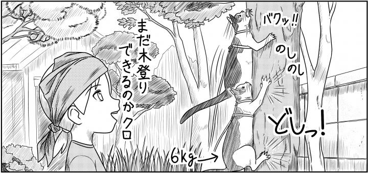 2、すっかり巨大化したクロイノも久しぶりに木登りして獲物をとりました。