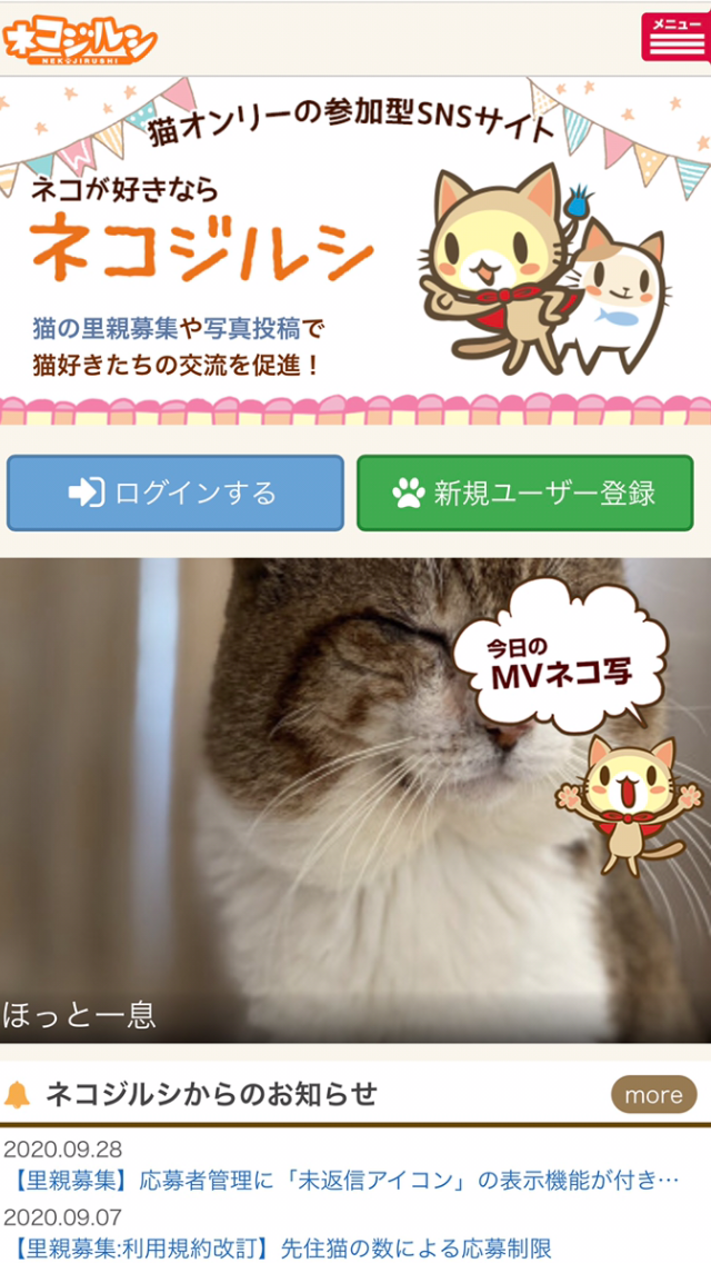 私は里親募集関係で登録だけしていたネコジルシ初心者ですが、これからは色々と更新していこうと思いますので、よろしくお願いします❗️