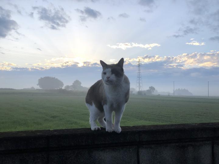 塀の向こうはモヤってるけど、少しお日様の光が漏れてるにゃ。