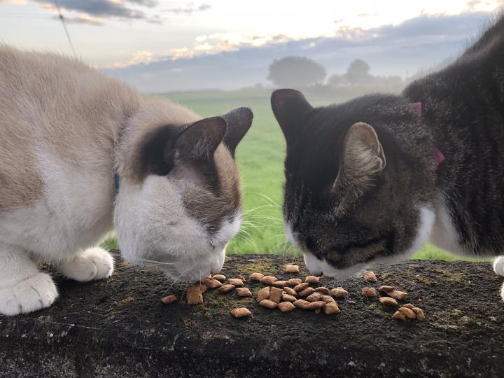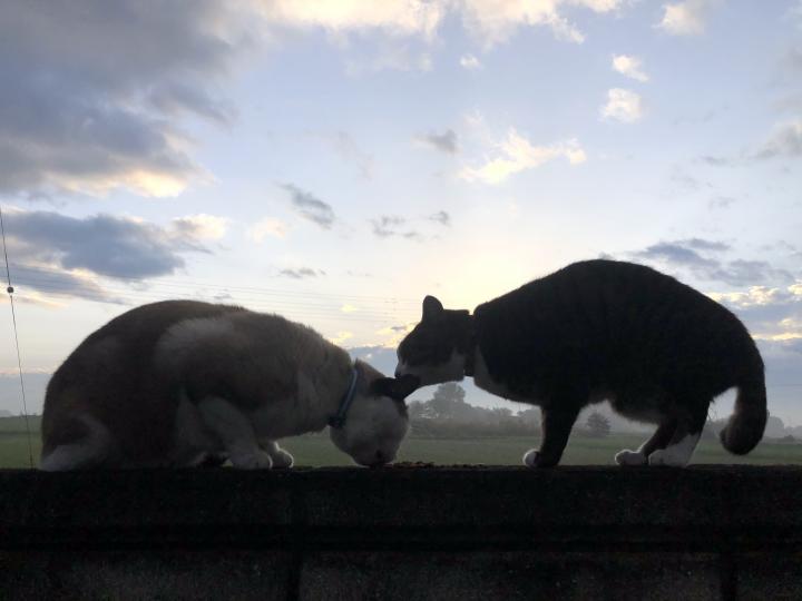 ご褒美のシーバ、いつもトラちゃんは好きじゃないからいらにゃーい、って言うのに今日はモリモリ食べてるにゃ。
