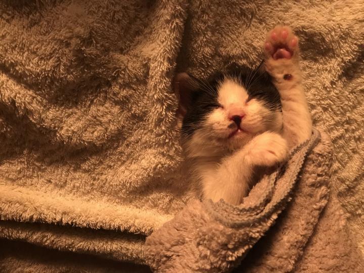 この柔らかいタオルが落ち着くのか大好きみたいです。