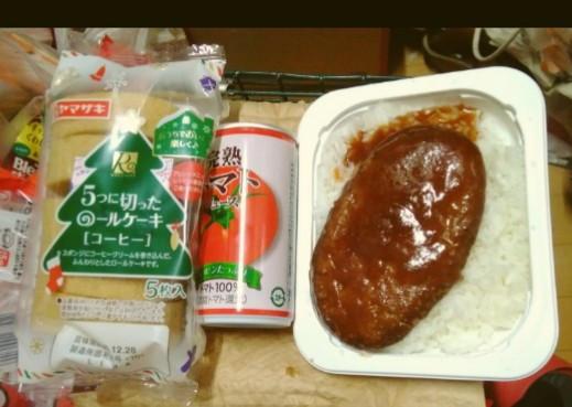 仕方ないので,買い置きのロール・ケーキとチキン・ハンバーグでも食べよう。ノンアルコール・サングリアも今年は未入荷。「赤」はトマトジュースで良いや。…虚しいねぇ…