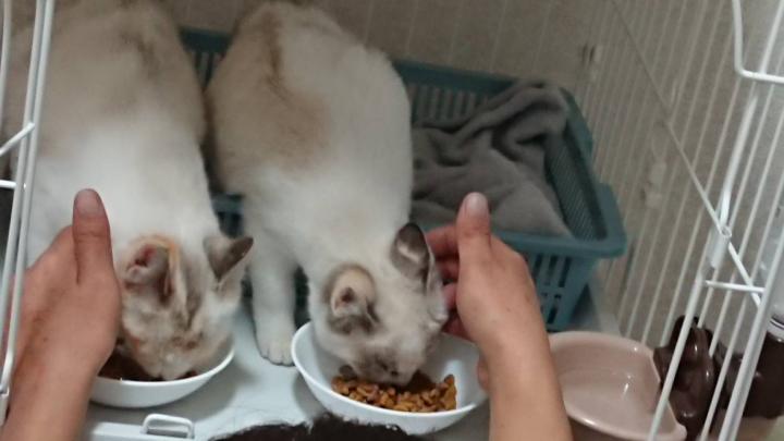 夢中でご飯を食べている事を良い事に、二匹の頭を人差し指を伸ばしてサワサワ‥🎵