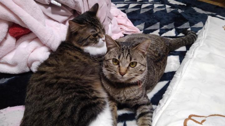 ここあくんがいました✨ 男の子女の子の兄弟を引き取り育てています♪ 男の子は甘えん坊で、猫はお腹触るの嫌がるなんて聞いたことあるけど、二人ともお腹触ってほしそうにして、撫でれば気持ち良さそうにして...