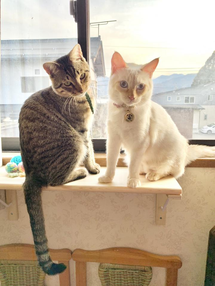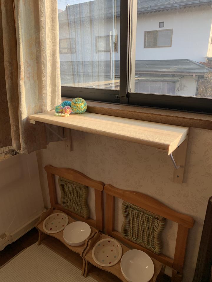 この間、鈍臭い富サンが狭い窓のサンから落ちそうになったので、棚つけました😆