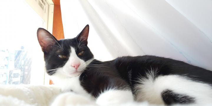 サンくんの前にも、生後1ヶ月の黒猫を保護し、その子はかかりつけの動物病院の看護師さんが一目惚れして貰われて行きました。