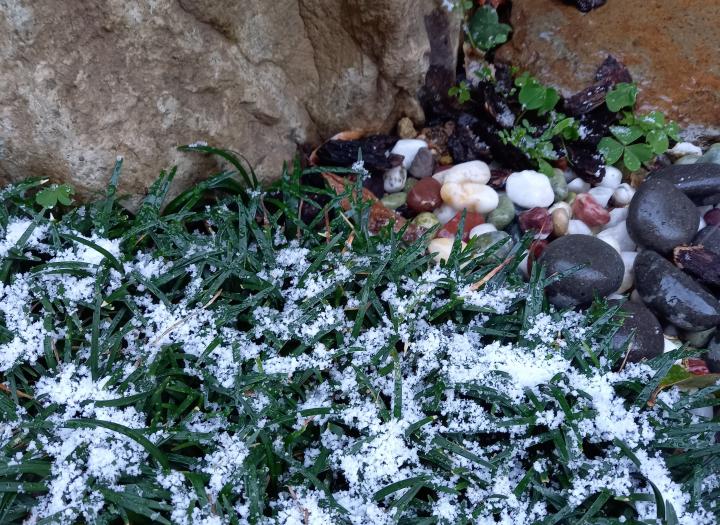 今朝は冷え込見ました。庭にうっすらと積もる雪❄️