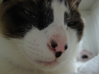 スキををついてアジのフライの尾っぽ部分を引きずりながら逃亡を
