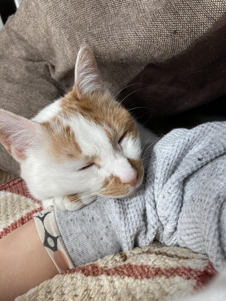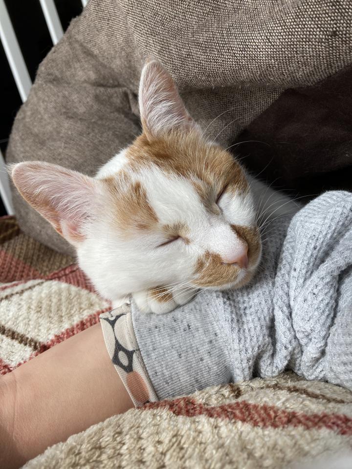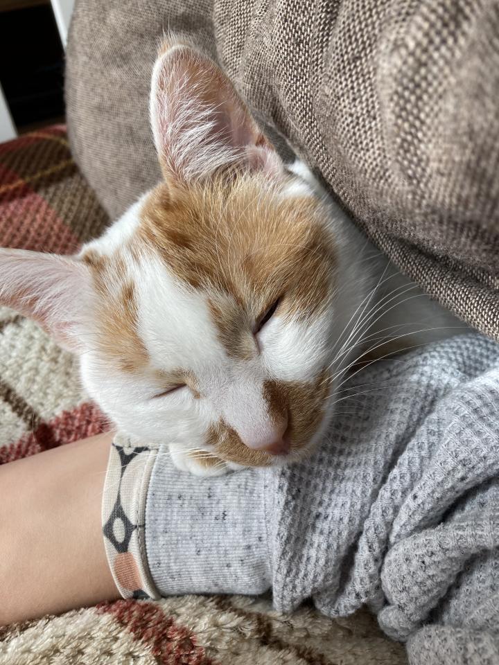 私の腕に顔を乗せてくつろぎ出しました☺️