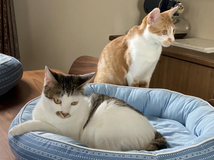 トラちゃんが加わったときは違和感なくなじんだけど、仲良くいつもくっついていたモモちゃんと距離ができて、しばらくは別行動してたなあ。
