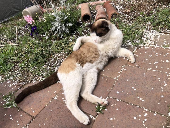 雨が降って花びらが随分と落ちちゃったにゃ。