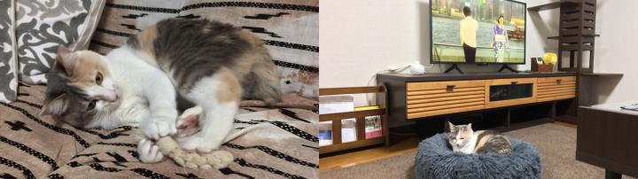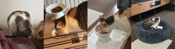 誕生祝いで鰹(無一物パウチ)食べたり、ちゅ~るスープ飲んだり。