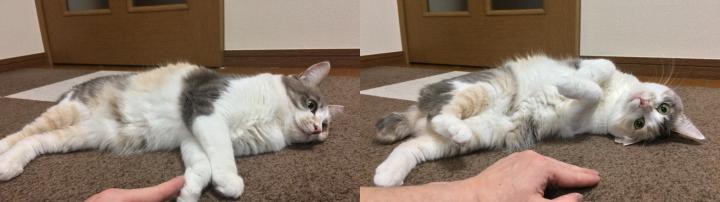 ゴロン、更にゴロン(肉球をシッカリ触れたのは初めて?)