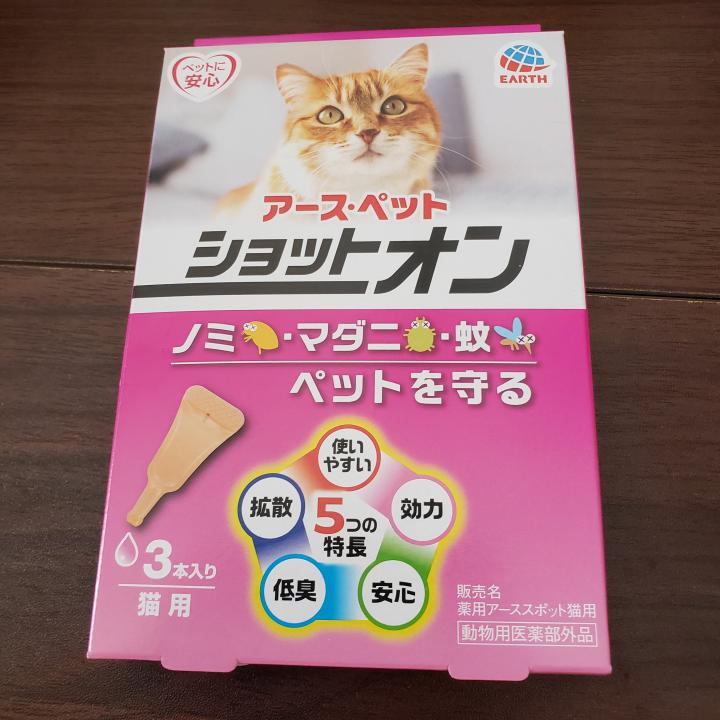 ショットオン、店で買ってみました。3本で1280円、毎月病院に2匹連れて行くのもと思い、三種混合を打つ月は病院でしてもらおうと思ってますが😯