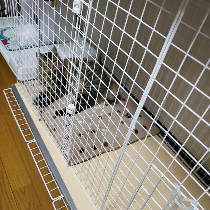 いつもは私と寝ますがリビングで寝てもらいました。リビングで寝てるノエルは2匹になるとまたまた深夜の運動会するのでゲージで寝ることになります