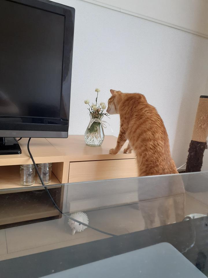結局花を切って、リビングに飾ってみましたが、なんかやっぱ元気ない。