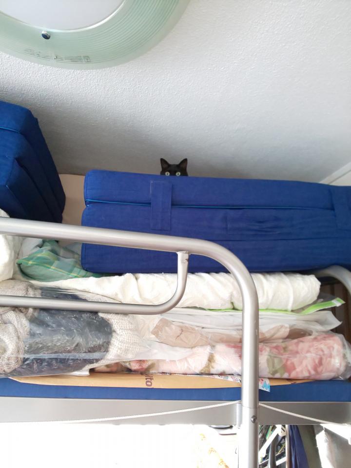 ↓布団を上げているベッドの上(見つかりますか?😸)