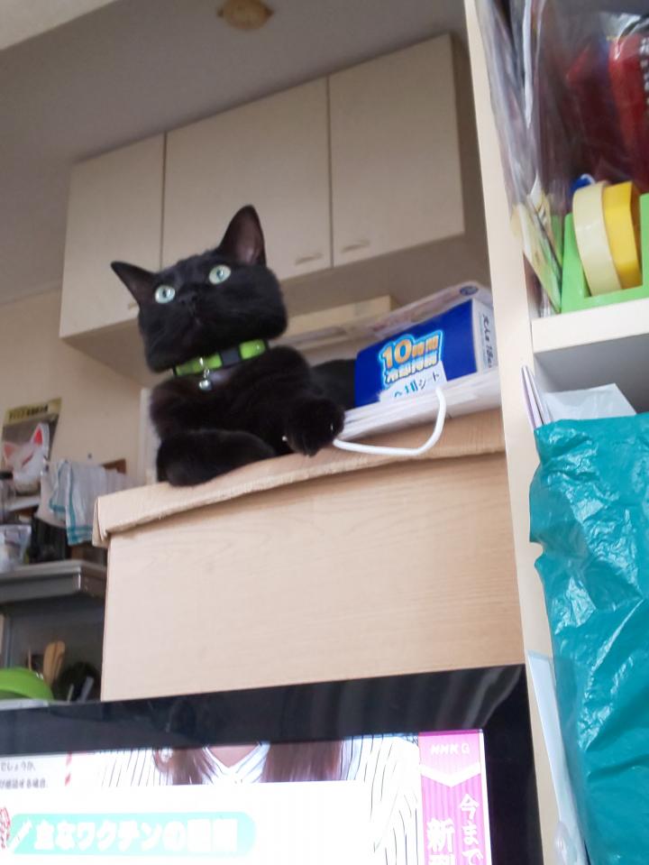↓テレビ裏の薬箱の上(餌の催促で上る事多数)