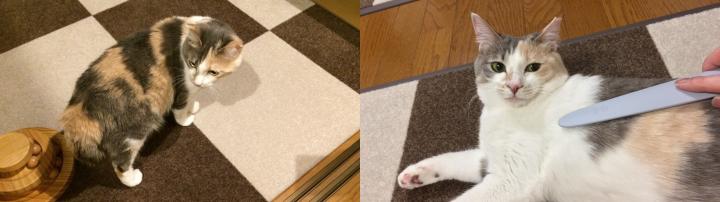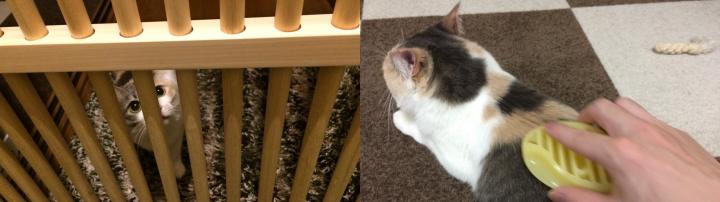 帰宅を出迎えたり、少しブラッシングされたり。