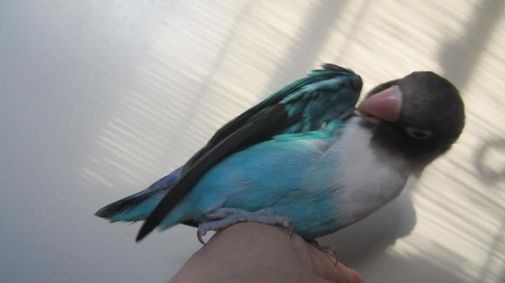 👩「可愛いよ💕 最近 おっきな羽根が よく抜けるねえ!」