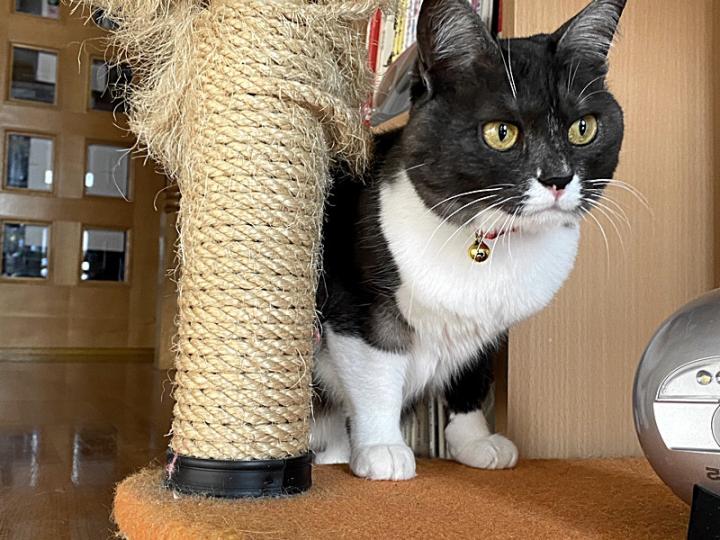 ネズミちゃん、空の迫力に恐れ慄きキャットタワーから降りて廊下に避難。