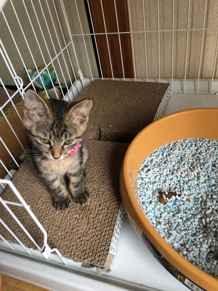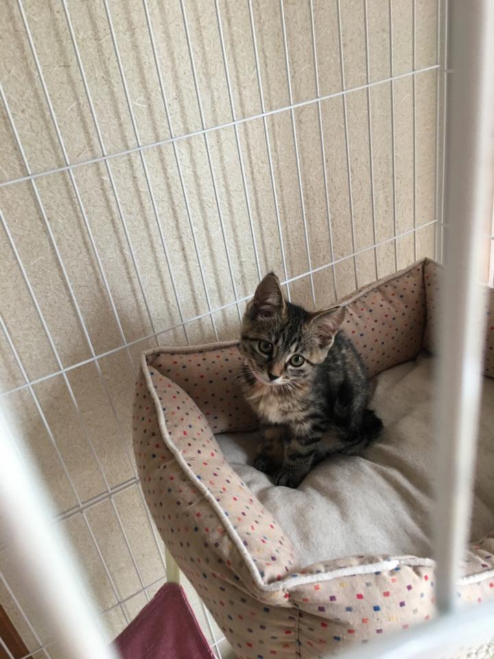1時間早めて片付け始め、すーちゃんを車に乗せた後、兄妹が巣だって独りぼっちになり寂しがっていると聞いたキジトラちゃんを預かろうと決めて保護主さんにお願いしました。