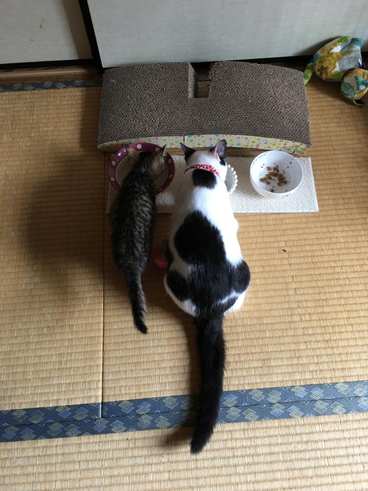 並んでご飯、体格の差がよく分かりますねー😆