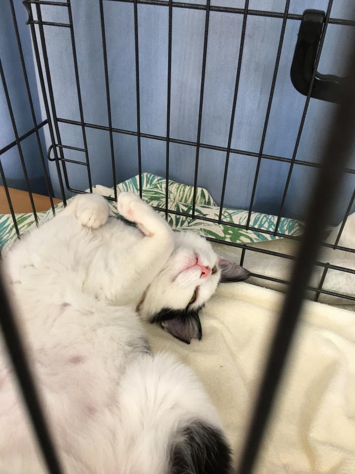 すーちゃん、譲渡会での爆睡へそ天です🤫。