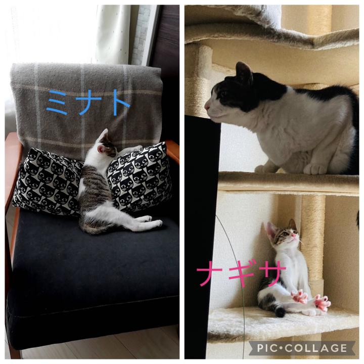 ナギちゃんはめっちゃおっきいお兄ちゃん猫さんと無事に仲良くなれました。(体重8.5kgあるそうです)
