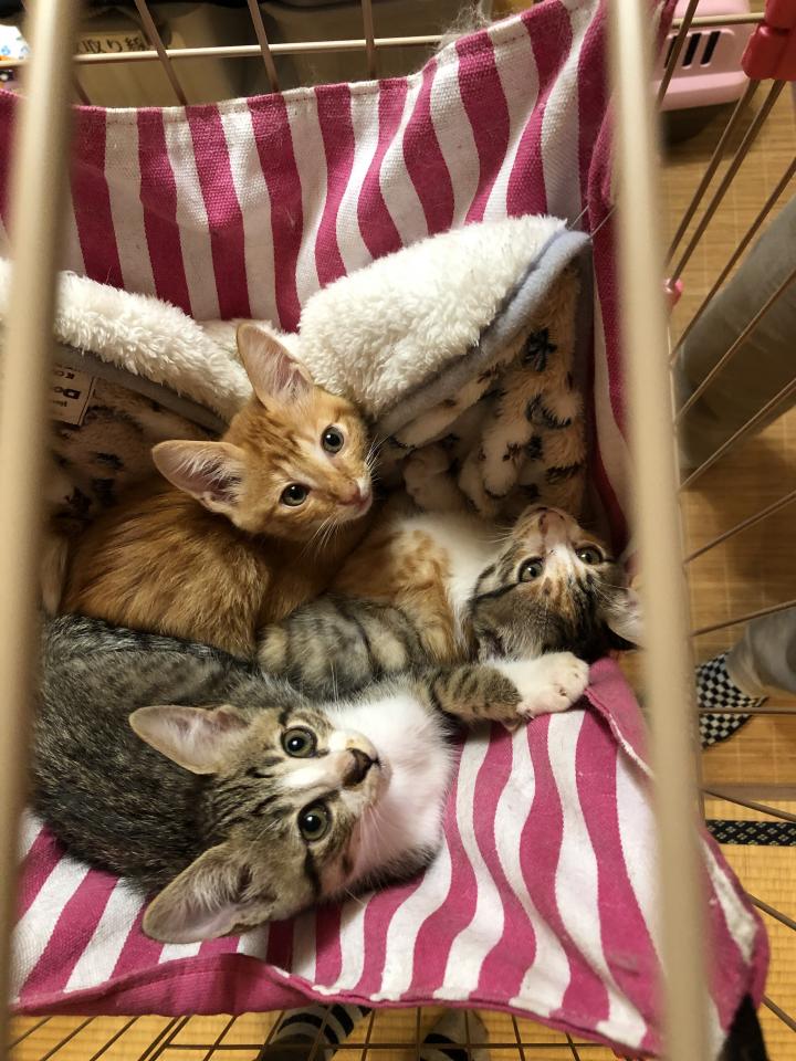 たまたま行った山道で、子猫だけ3匹いるのを発見。しばらく様子を見ましたが、他に猫はおらず。