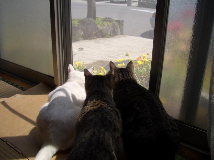 そんな2匹にチョボまで参加すると3匹同時に同じ動きで