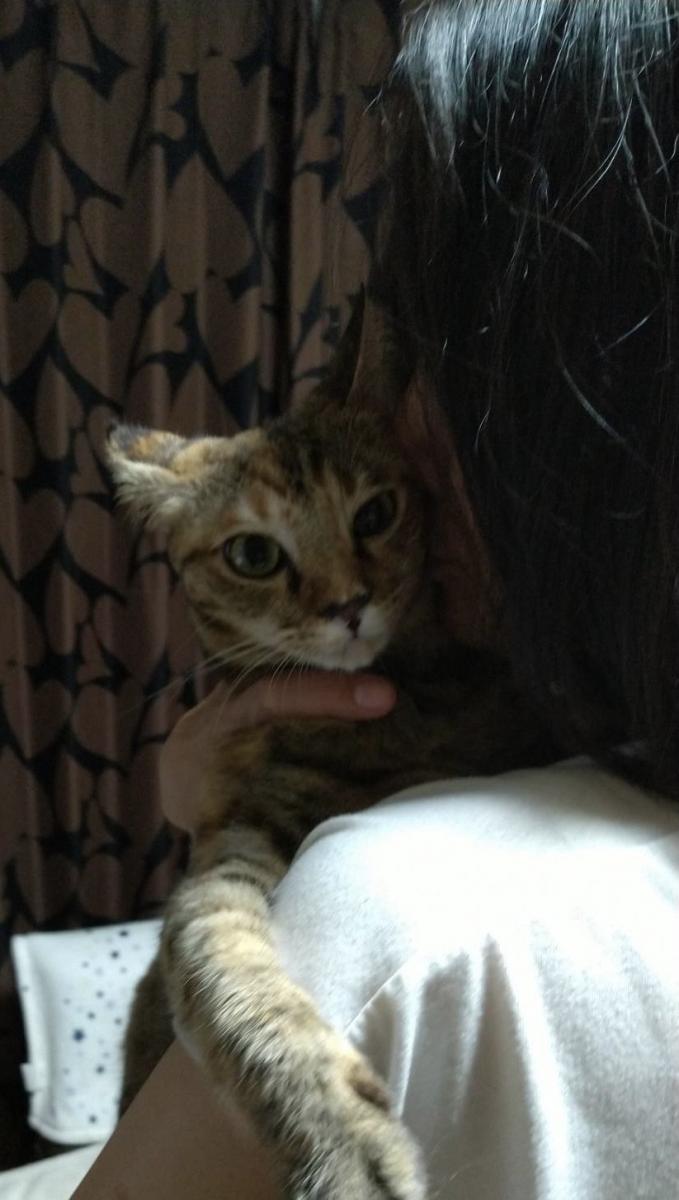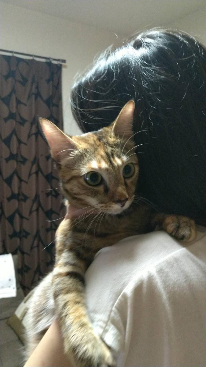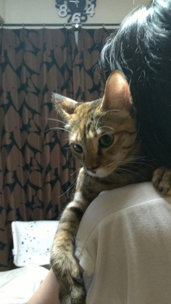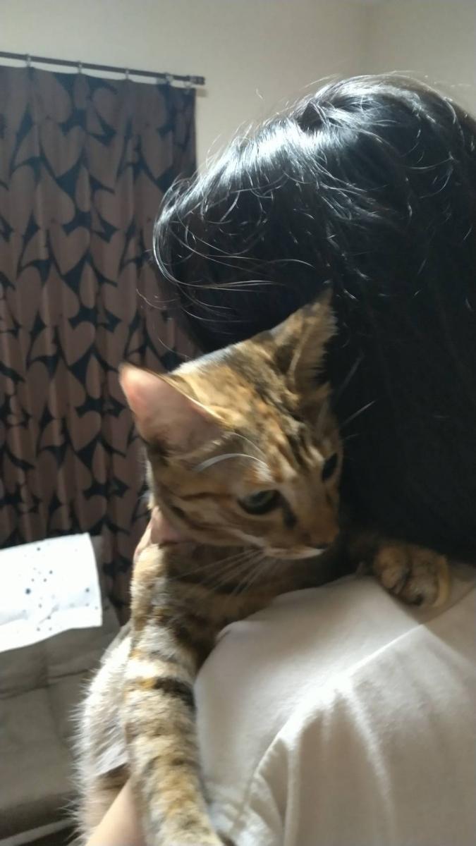大きな音にアリーはよほど怖かったらしく飛びついてきてガシッとしがみついてきました♡