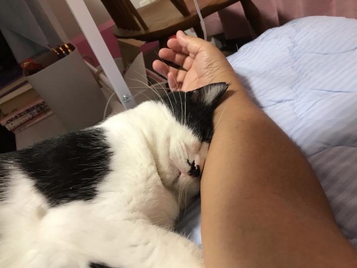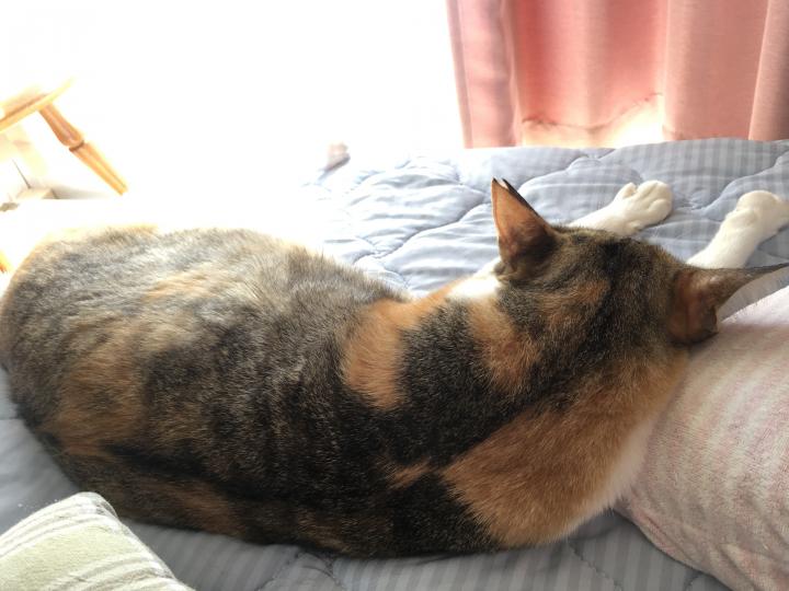 寝る前とそろそろ起きる朝がミケちゃんの添い寝タイム。