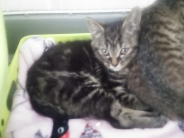 朝早く家主から子猫2匹を捕獲したとの連絡があり、たまたま休みだった夫に車をだしてもらう。