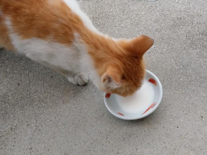 今日買って来たミルクをゴクゴク飲んで、カリカリと柔らかく蒸した鳥胸肉細かくしたの食べて元気になったかな