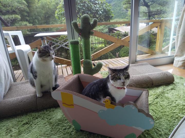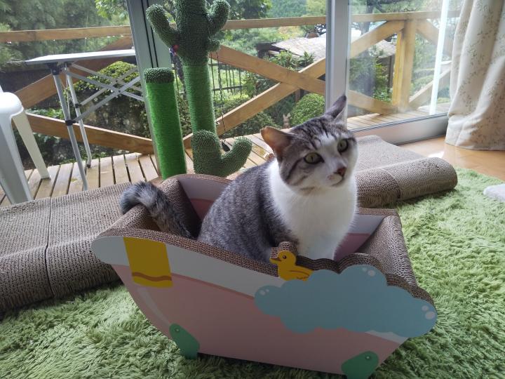 スーの御世話になったボランティアさん御二人が、お風呂のデザインの爪研ぎを📦️送って来てくださいました~😆