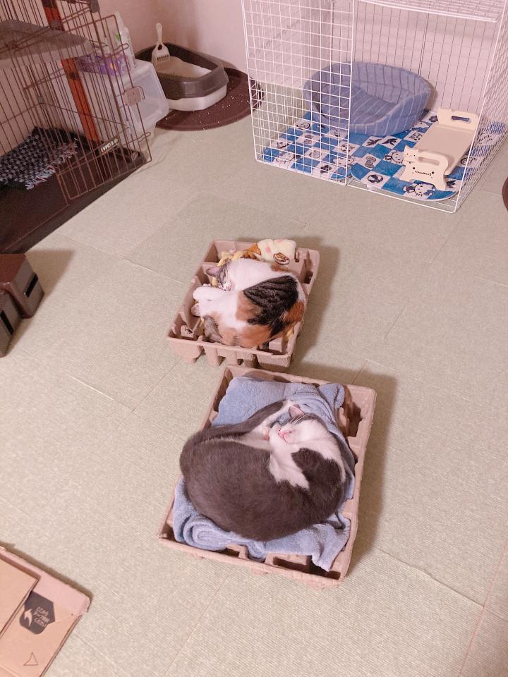 ダンボールに毛布を敷けばそれはもう立派なベッドになりました