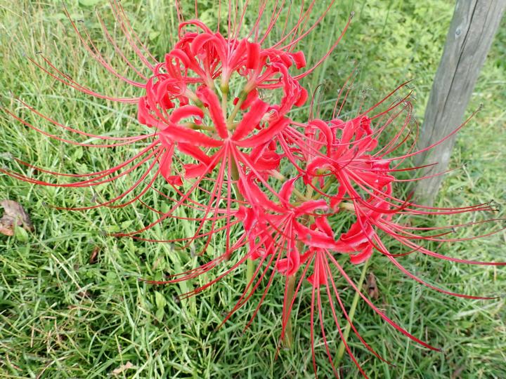 稲刈りが終わった田んぼの畔に彼岸花がずーっと咲いていました。