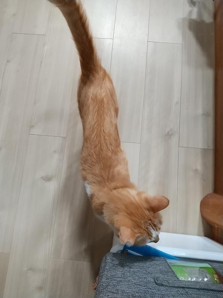 猫の避難場所(人の手の届かない所)で休んでいて、呼べば尻尾で返事するので様子見。