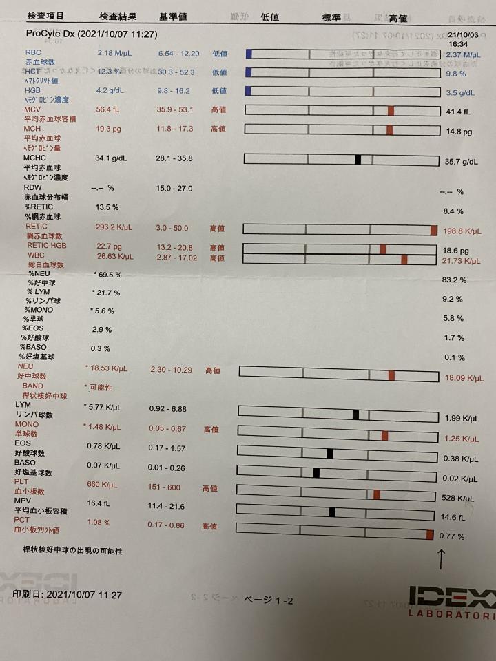 赤血球が破壊されるスピードがUPしてたので、3回目の輸血はもうしない。