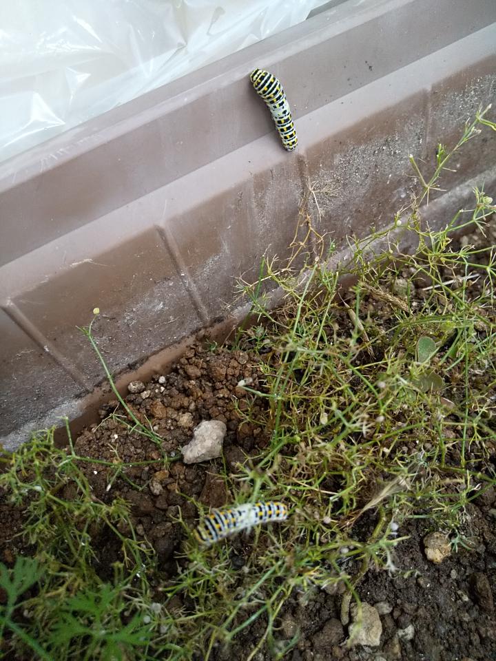 以下キアゲハの幼虫の写真出ますので閲覧注意です。